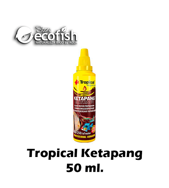 KETAPANG EXTRACT producto para preparar el biotopo de aguas negras TROPICAL KETAPANG EXTRACT es un extracto de la almendra de la India (Terminalia catappa) para preparar el agua que facilite la cría de los peces ornamentales y camarones. Añade al agua naturales taninos y ácidos húmicos, por ello, los parámetros de éste son similares a los del biotopo natural de los peces que viven en las aguas negras. Las propiedades preventivas de las hojas de la almendra de la India han sido utilizadas durante siglos por la medicina natural. Los criadores asiáticos de peces ornamentales utilizan las hojas de la almendra de la India para proteger la hueva de los peces, dando lugar a la mejor tasa de incubabilidad y supervivencia de las crías. En los acuarios que utilizan éstas hojas, esporádicamente se observan problemas en la piel de los peces. Es también poco frecuente el roce de los peces con los elementos de accesorios o decoración del acuario. Se ha observado una disminución en el número de peces que sufren de enfermedades causadas por microorganismos. Los peces y camarones que viven en el agua con el extracto de las hojas de la almendra de la India tienen una coloración bella, reservan una condición perfecta y llegan a la freza. KETAPANG EXTRACT protege eficazmente la hueva, acelera la regeneración de la piel, las mucosas y las aletas de los peces criados.