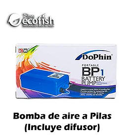 Bomba de aire para emergencias eléctricas; funciona a pilas e incluye manguera y piedra difusora.